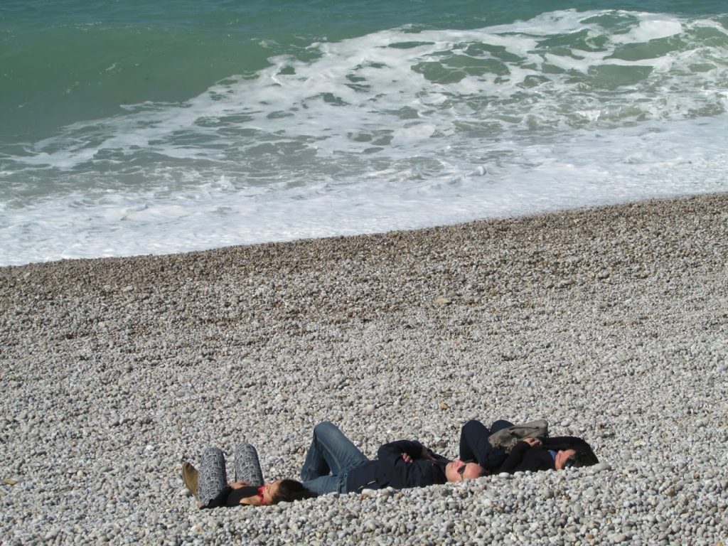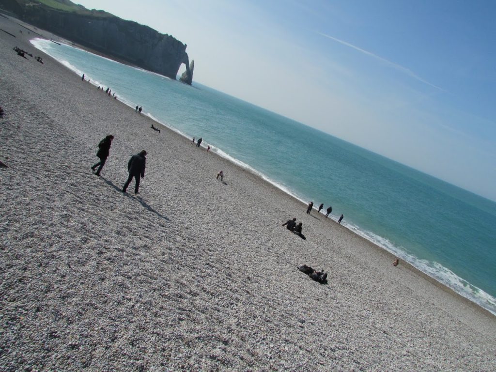 Passei pouco, muito pouco tempo em Étretat, na Normandia. Visitei o município no final de março, e ainda fazia frio, mas com dias ensolarados. Na pequena cidade o que vale a pena é ver os jardins dentro de um parque, localizado no alto de uma das montanhas que ladeiam o centro e as erosões marinhas; caminhar na calçada da avenida beira mar e na praia e tomar um sozinho na praia – que não é de areia mas, sim, de pequenas pedras.