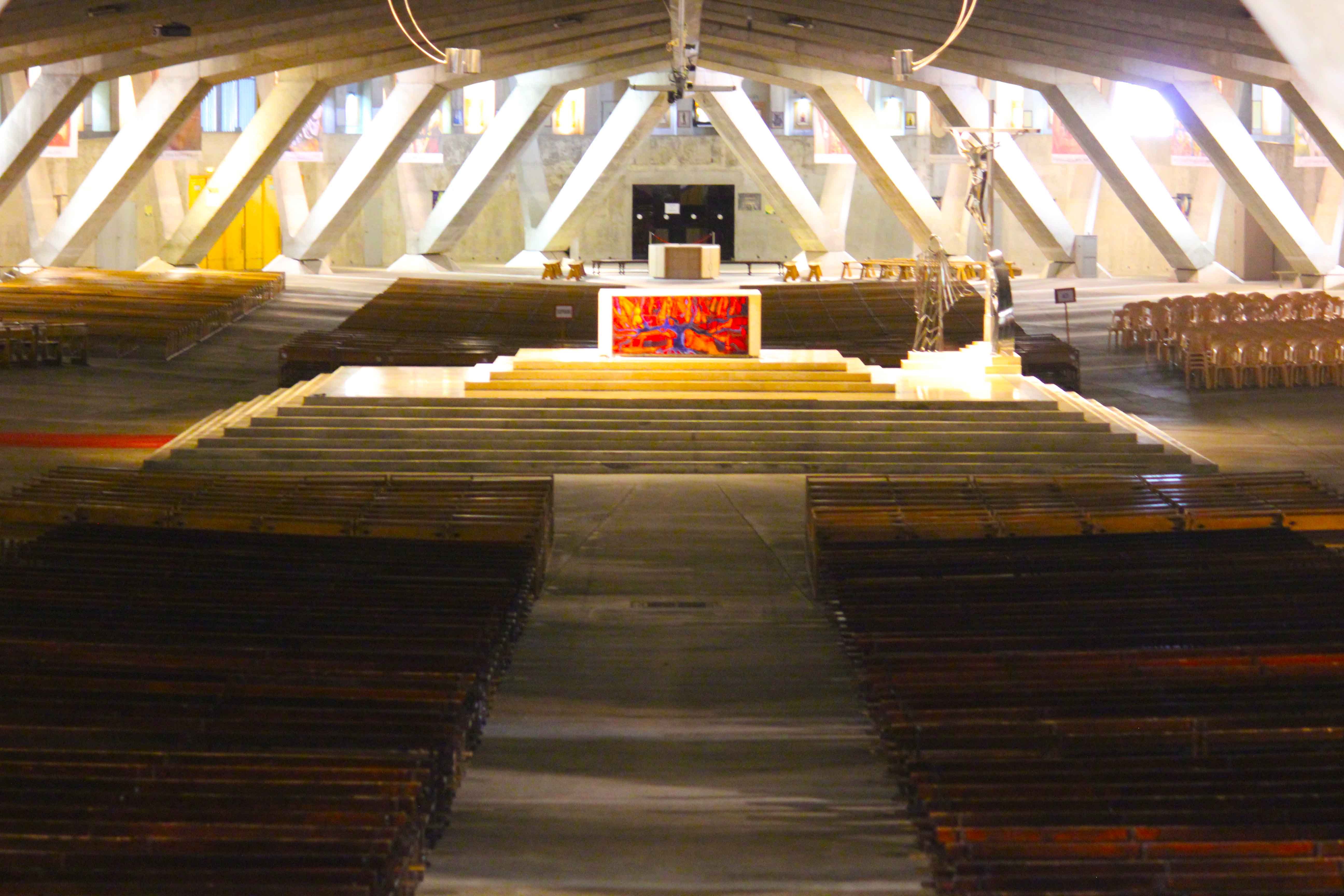 Ali, além da Basilique du Rosaire, existe ainda uma gigantesca igreja subterrânea, a “Basilique de Saint Pie X” que assegura cerca de 30 mil pessoas por missa.