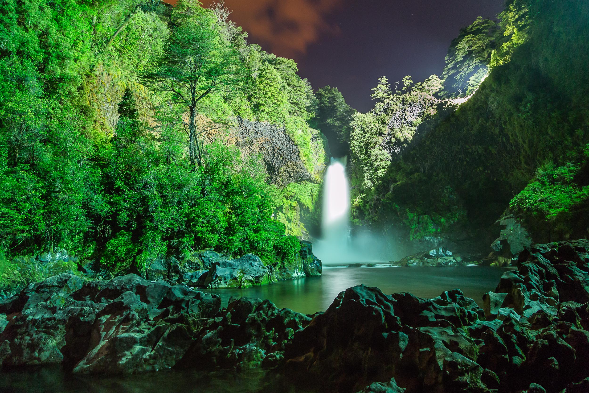 Um outra trilha é o Salto La Leona. Ali você encontra uma bela cachoeira com águas cristalinas do rio Fuy. Pelo caminho é possível apreciar a grande diversidade de flora e fauna da floresta temperada.